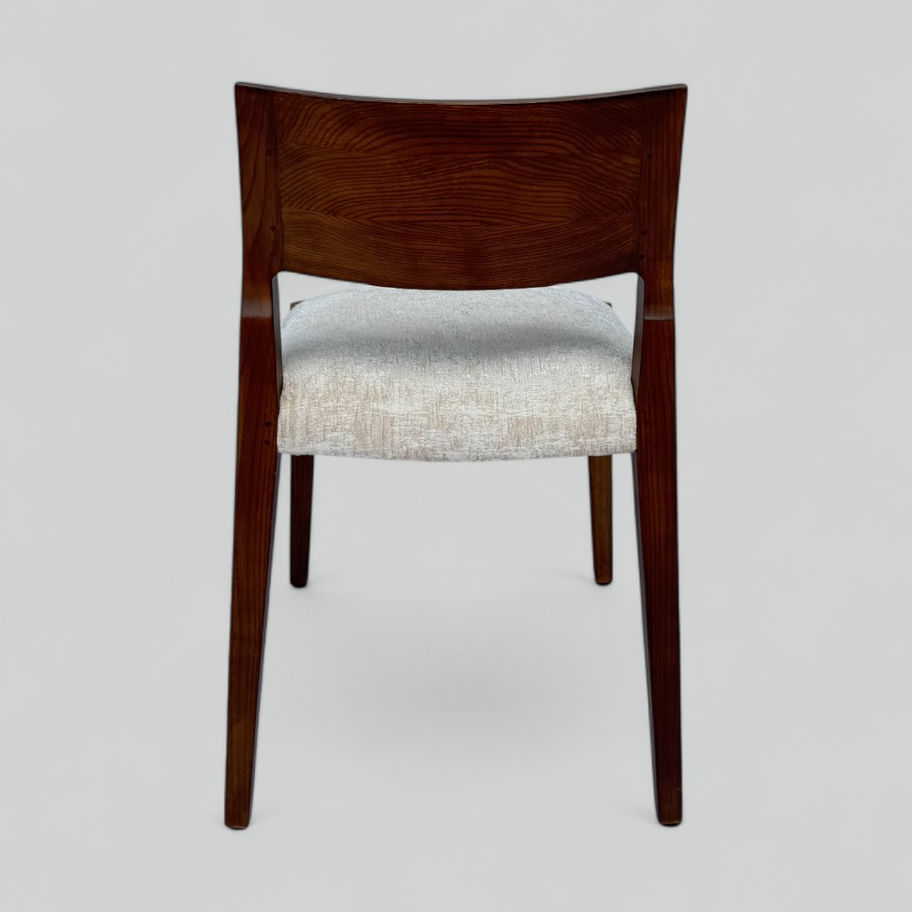 The Mave dining Chair is a minimalist yet elegant dining seating piece designed to blend seamlessly into contemporary interiors. With dimensions of L-45 cm x D-45 cm x SH-45 cm and a total height of 76 cm, it strikes a perfect balance between compact form and everyday comfort. Crafted from Ashwood with a rich walnut finish, the chair showcases a subtly curved backrest that accentuates the natural wood grain, lending warmth and character. The cushioned seat is upholstered in a textured beige fabric, offering a soft contrast and a cozy feel. Ideal for dining settings or accent use, the Mave Chair embodies clean lines and timeless simplicity.